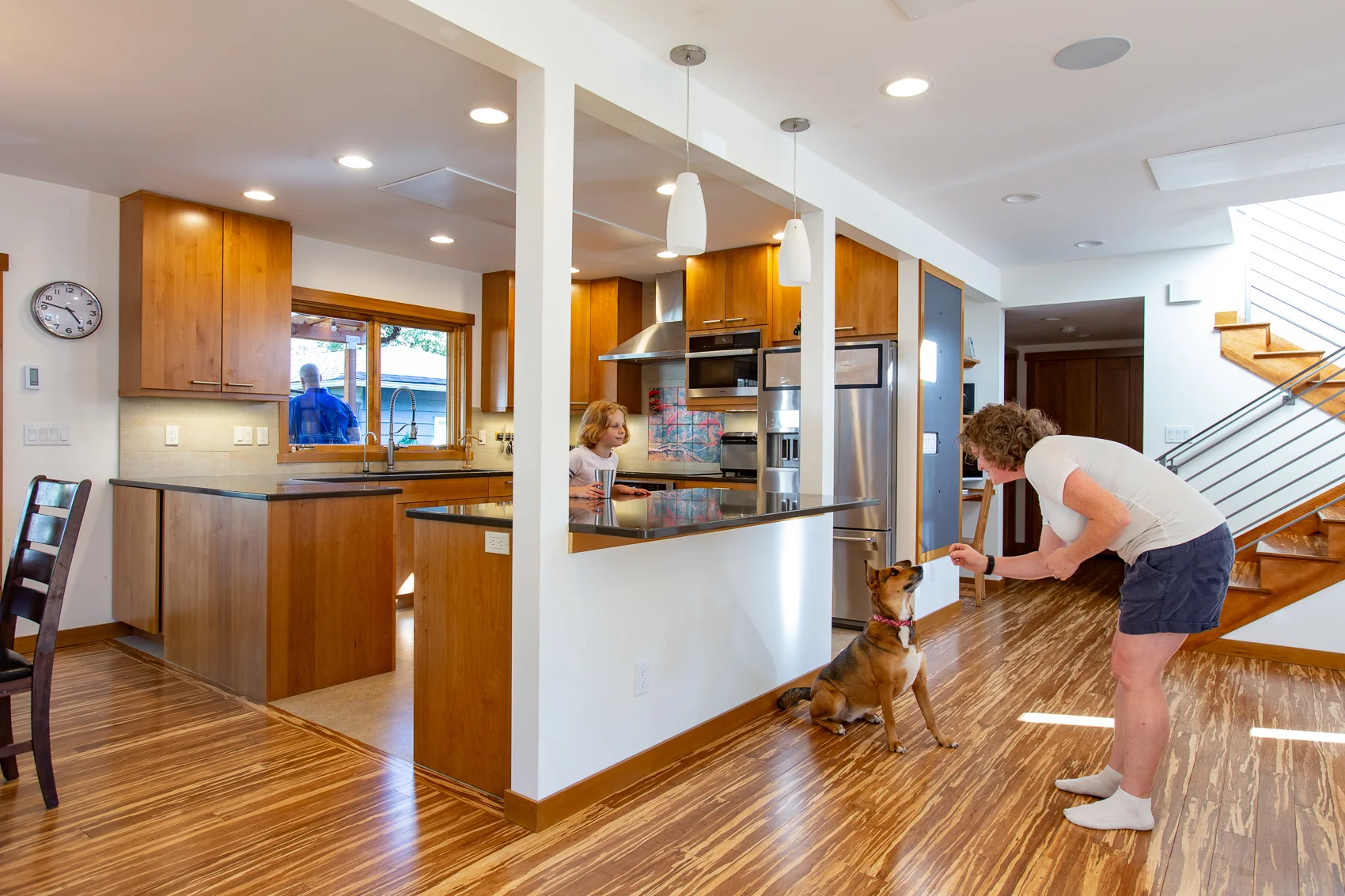 With an all-in budget of $450,000, they didn’t want to tear down the existing structure to make way for a new one. Betsy Grant credits her architect Terry Phelan of Living Shelter Design Architects with the idea of the lift — jacking up the old house and filling in with new structure underneath.